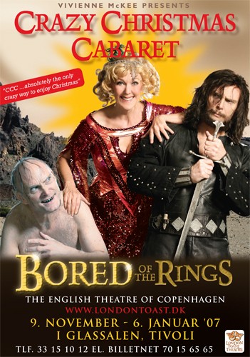 - (del) (rev) 16: 1, 2 2006 . . Krn@krn.dk . . 351x500 (76906 bytes) (Poster from Bored of the Rings - The Creazy Christmas Cabaret, Copenhagen 2006 by London Toast Compagny. http://londontoase.dk )