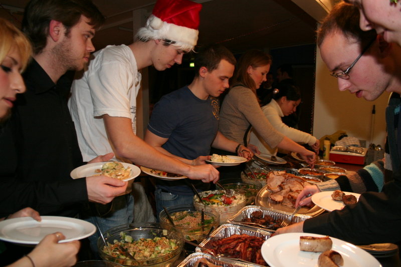 diku julefrokost 20061215. The main dish is being served. This is the southern (end) serving.